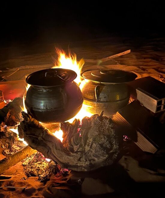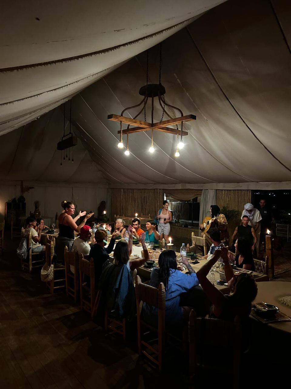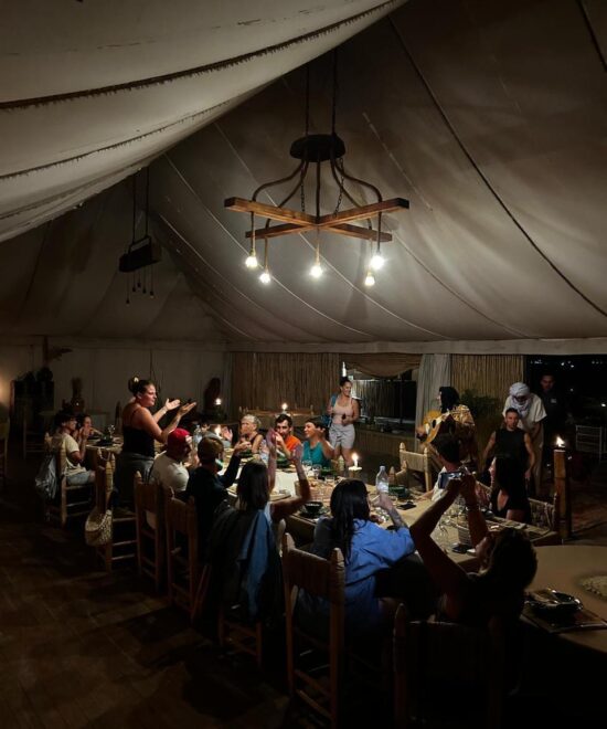 Que ce soit sous la tente caïdale, dans notre salle décorée de tapis berbères, ou à la belle étoile, chaque repas devient une véritable expérience culturelle et sensorielle.