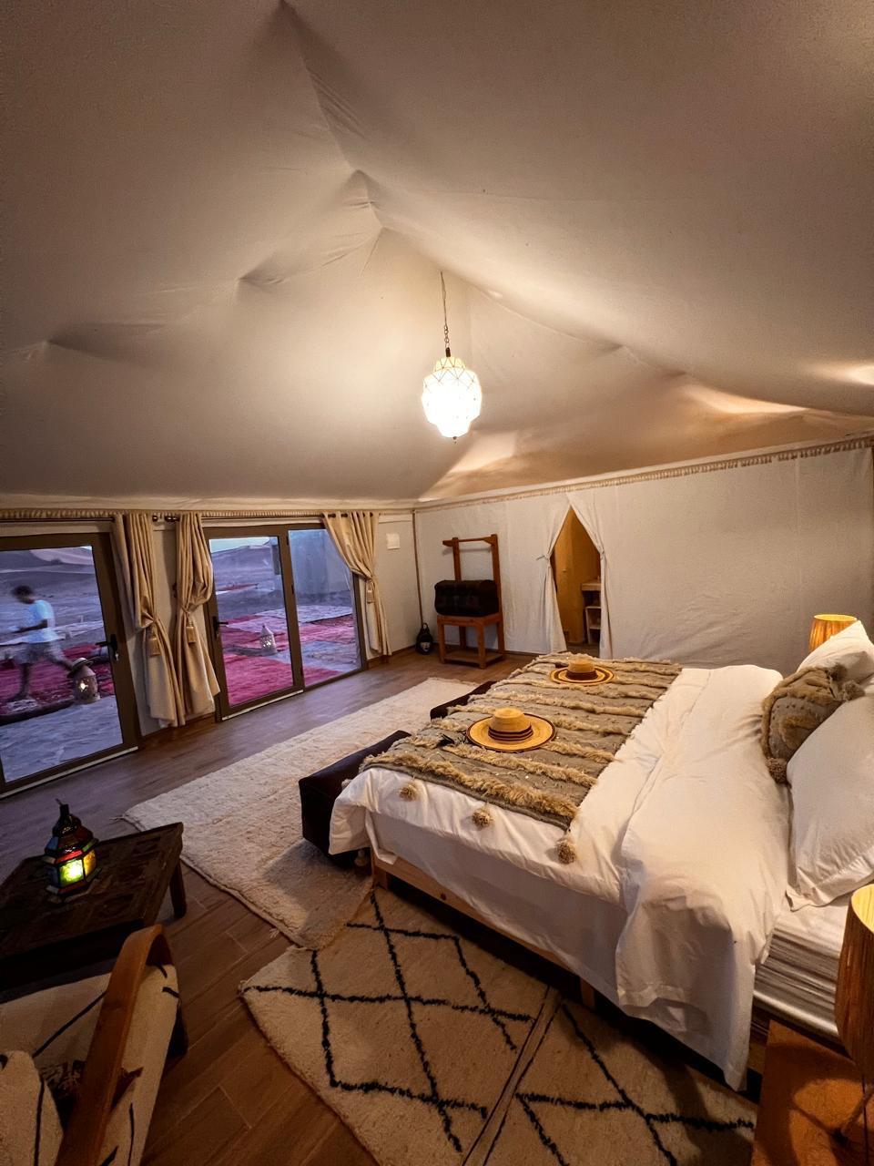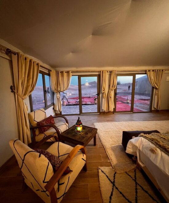 Profitez du confort de notre Chambre Double au cœur du désert, alliant authenticité et modernité pour un séjour inoubliable.